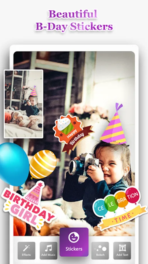 🎂 Availability of birthday photo frames, stickers and photo animation effects.