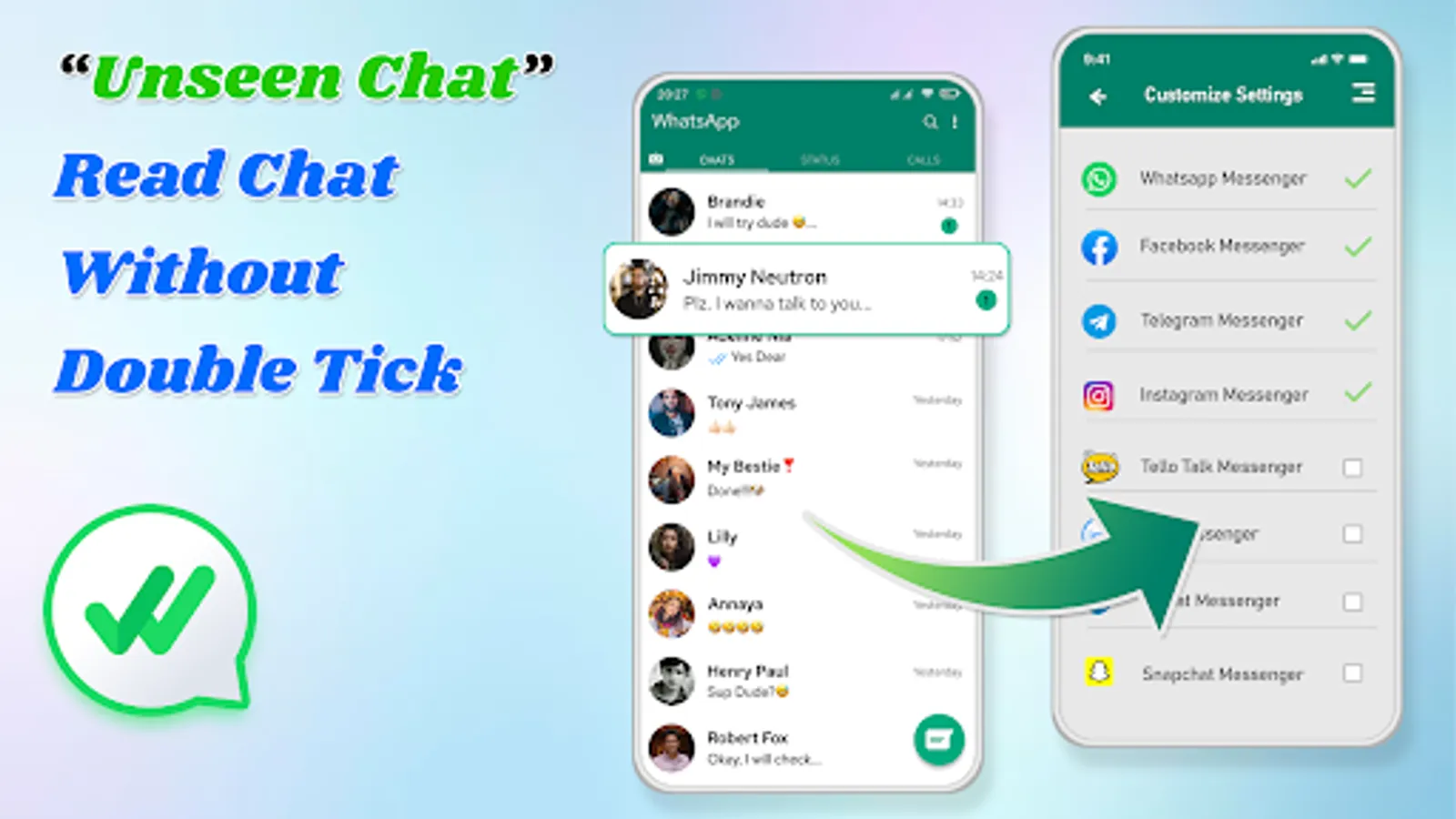 Unseen messenger lets you view all your unread messages without the need to open other apps, making it easy to discreetly read your unread messages without alerting anyone. Plus, you can avoid the double-blue checkmarks that can lead to uncomfortable conversations with unseen online.