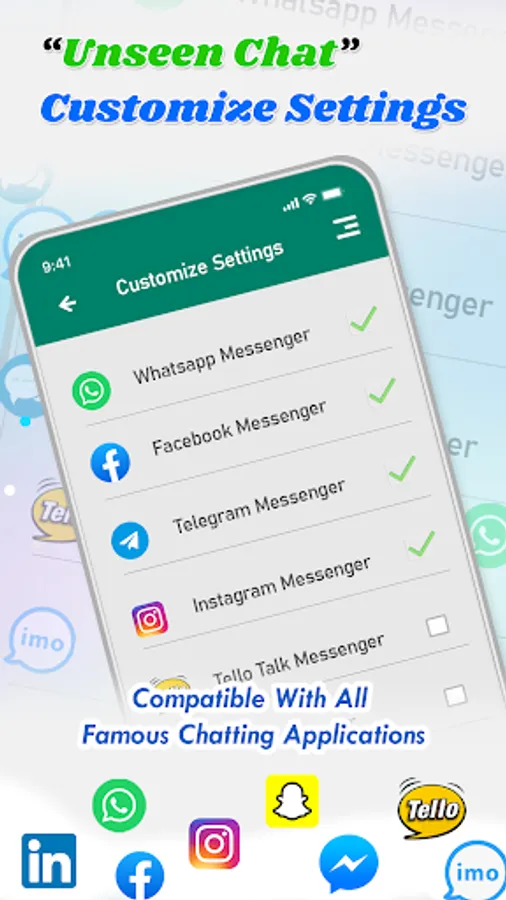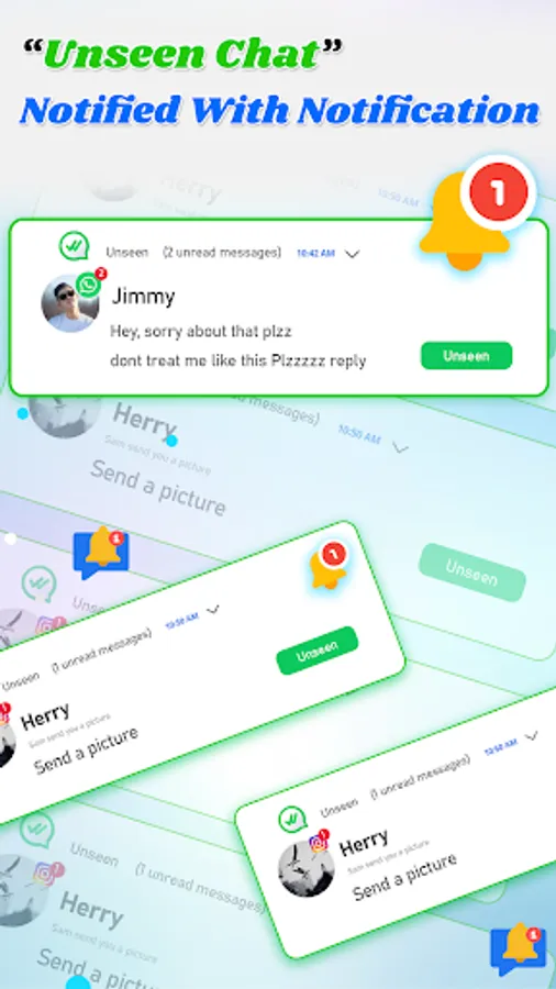 The unseen messenger no last seen no blue tick app is simple to use and is compatible with the most popular chat and unseen online apps. When you receive a message on supported chat apps, it will also be displayed on unseen messenger. The sender won't receive any indication that you have read the deleted messages, and your last read and blue ticks will be hidden with unseen online app.
