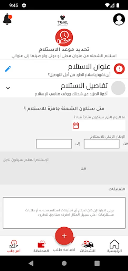 تطبيق خاص للعميل لمتابعة الشحنات و المعلومات المالية و إضافة الشحنات بكل سهولة و يسر