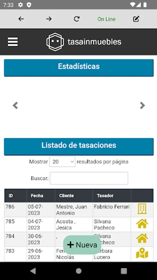 1. Make appraisals easily: Use Tasainmuebles to evaluate your properties easily and accurately. The application allows you to register a new appraisal with just one click and automatically stores it in the system pending editing.