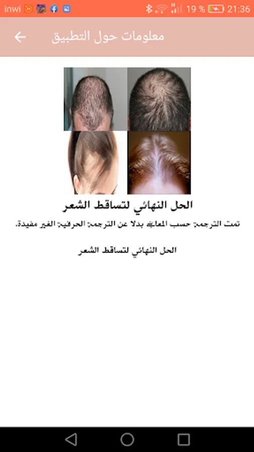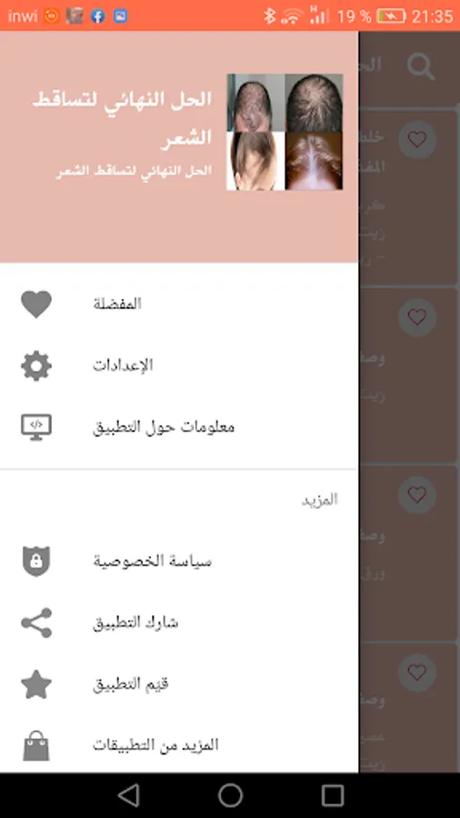 A definitive treatment for hair loss A free application that contains a set of recipes for treating hair loss that you can prepare in your home with ease.