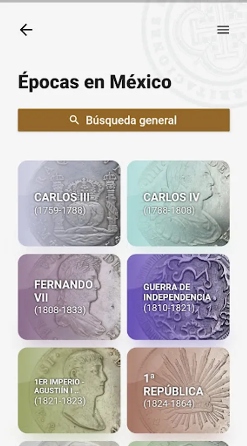 You will find the different catalogs by country, especially coins from Spain and Mexico.