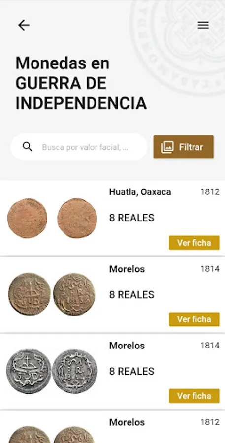 Tasamoneda by Mga has access to download and consult a list of coins that range from the 17th century to more recent coins.