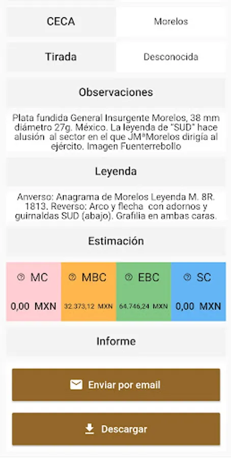 Tasamoneda by Mga does not replace the appraisal through catalogs or that of professionals in the sector, but it can offer you very useful information to know the true value of the pieces you have and thus avoid possible fraud.