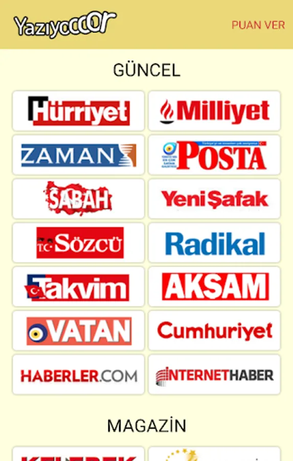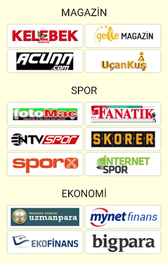 Milliyet, Hurriyet, Mail, Sabah, Zaman, Yeni Safak, spokesman radical, Calendar, evening, Vatan, Cumhuriyet, Haberler.co and I internethaber.co