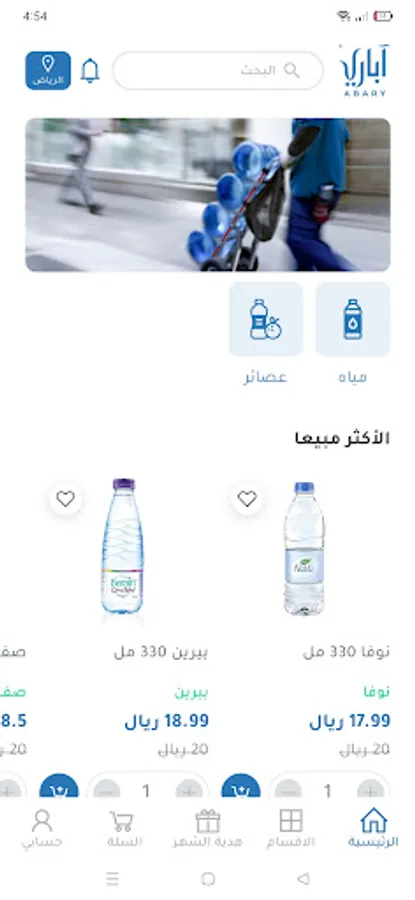 Abary application is an integrated online store for water delivery of various kinds, providing water delivery service to homes, mosques, schools, camps, rest houses, hospitals, wedding halls, and homes