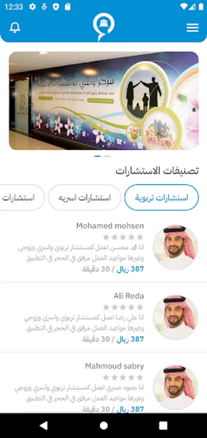 An electronic application for clients specializing in family and social counseling, as it provides you with a group of counselors and consultants specialized in many social and family fields.