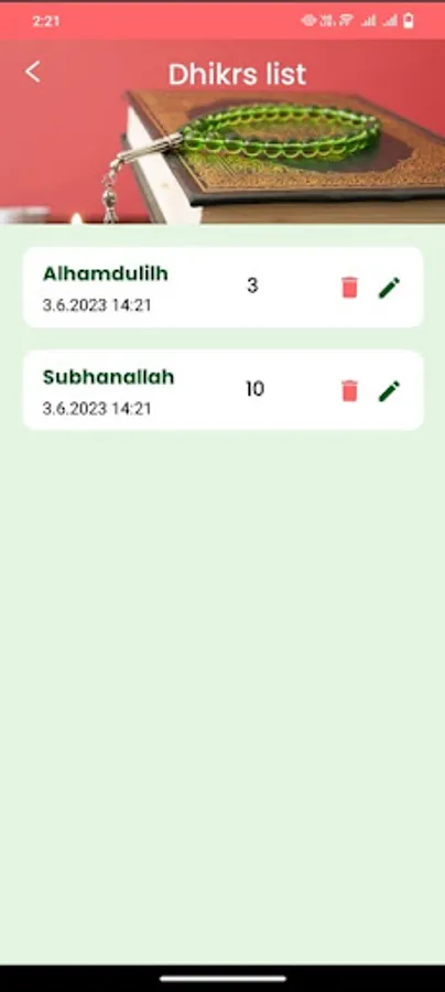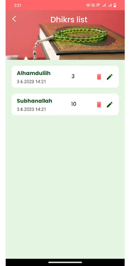 History and Progress: The app maintains a comprehensive history of all completed dhikr sessions, including the date, time, and count. This allows users to track their progress over time, fostering a sense of accomplishment and motivation in their spiritual journey.