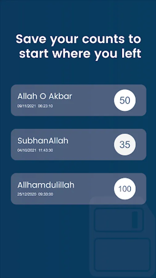 --> The application won’t erase your Dhikr Count 🔢 even if you close it. You can resume with the same number when you reopen the app.