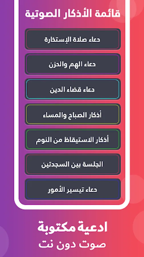 Do not forget to mention God: the application of automatic audio remembrances includes written religious supplications without the net, and the most important supplication for all needs. If your question is, can I find an application that reminds me of God with my voice without the net? The answer will certainly be yes, do not forget the remembrance of God, an automatic audio remembrance application that combines morning and evening remembrances with a voice without the net, supplications and praises, in addition to a reminder to seek forgiveness at all times of the day.