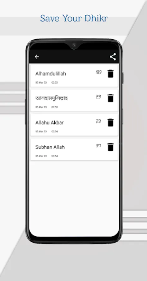 Now a tasbeeh/tasbih (তাসবিহ) is always in your pocket. For your daily dhikr, you can use this digital dhikr counter app.