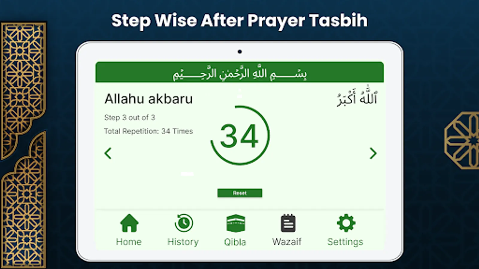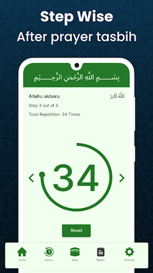 • Reset the value of zikr counter to zero by pressing the reset button.