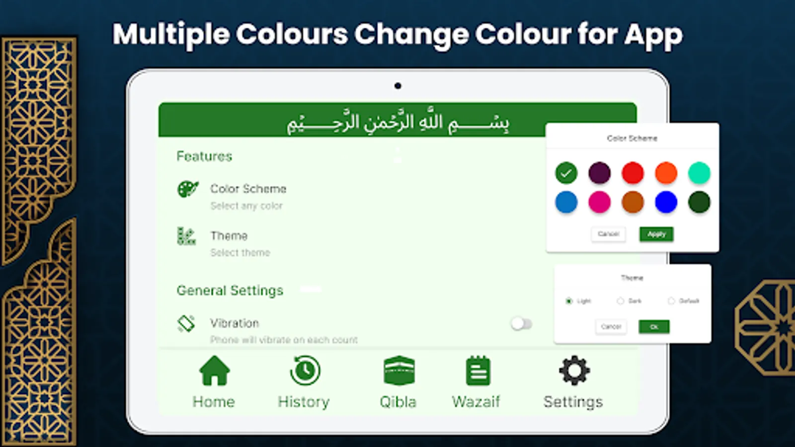 • A series of dialogs that help you learn the use of the tasbi counter application.