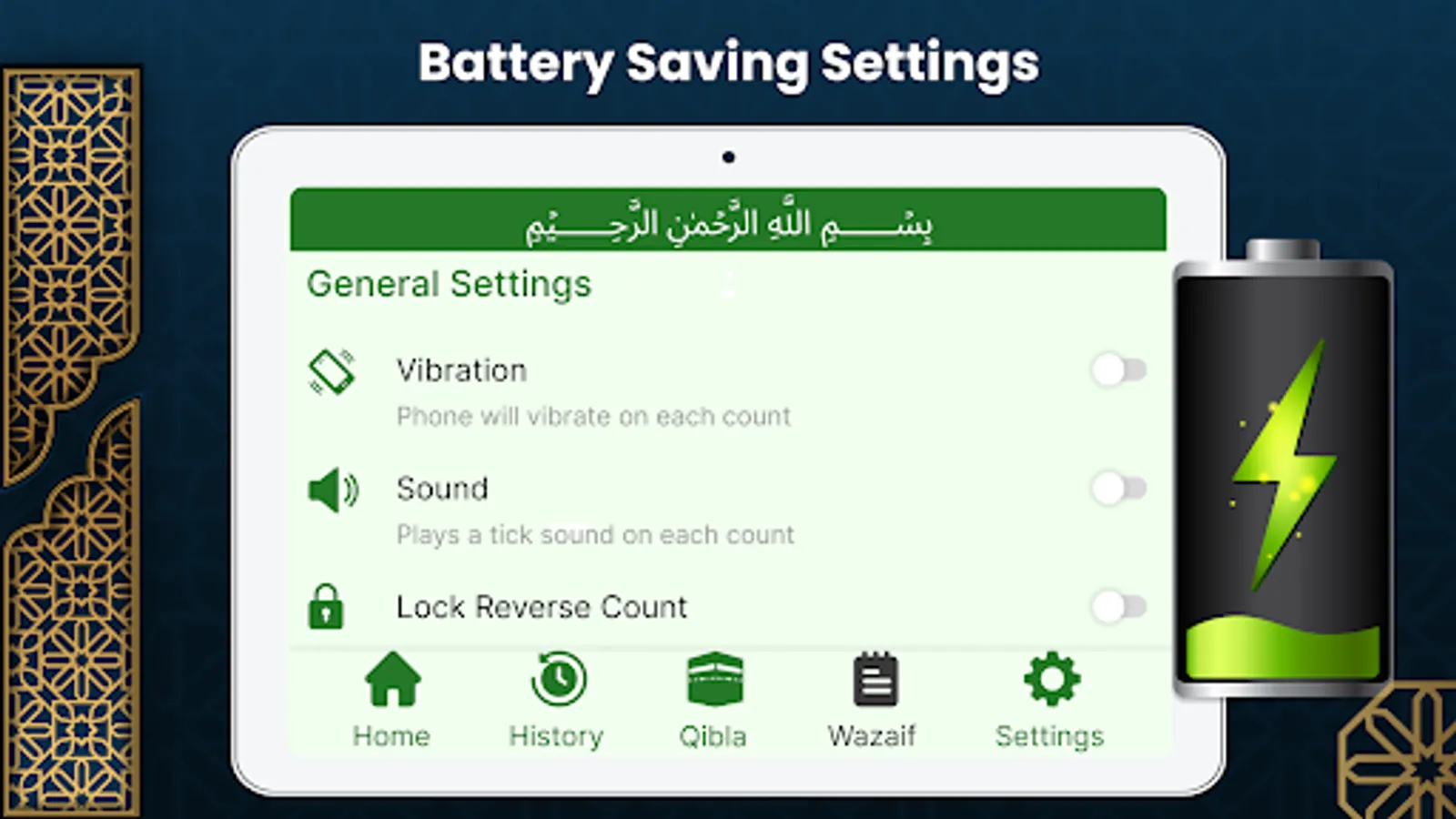 • Digital tasbih counter saves the count value even if the app is accidentally or intentionally closed.