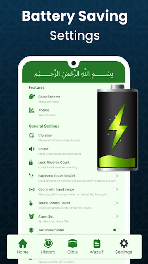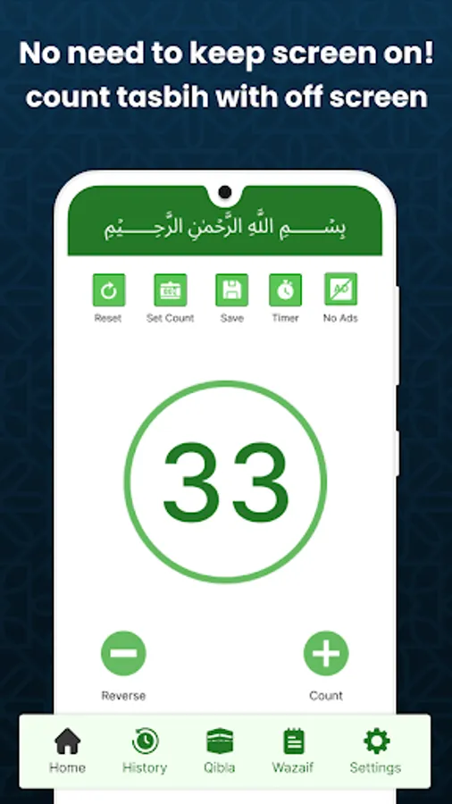 • No need to keep screen on: you can count zikr with screen off also! Use the 'hand swipe count' (proximity sensor) feature.