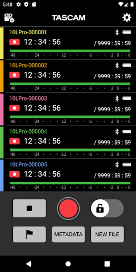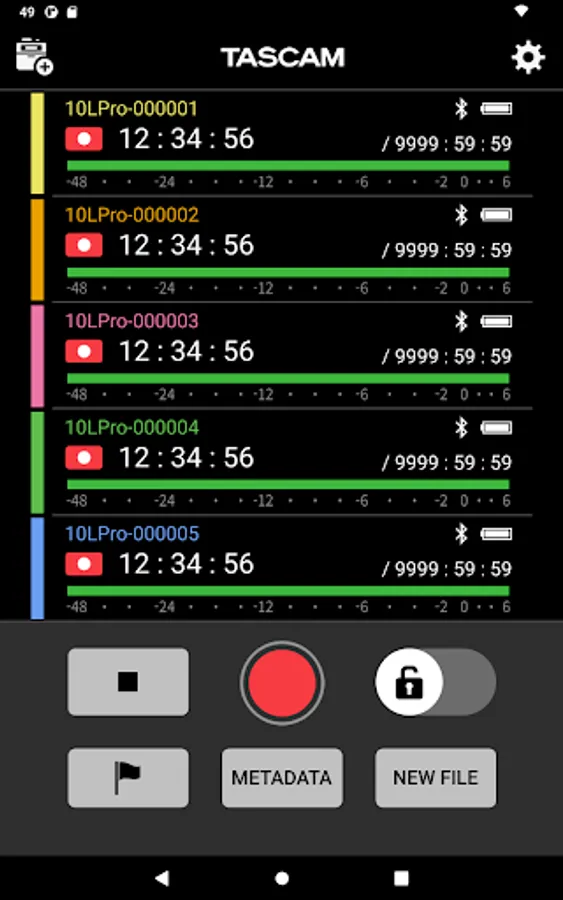 The DR-10L Pro CONNECT is an app that provides remote control up to five units simultaneously. This app enables to check device status and view the recorded waveforms real time for operation confirmation. Names and colors can be applied to individual devices for easy identification. Also, Metadata (project name, scene name, take number) can be recorded in the recording file (BEXT, iXML).