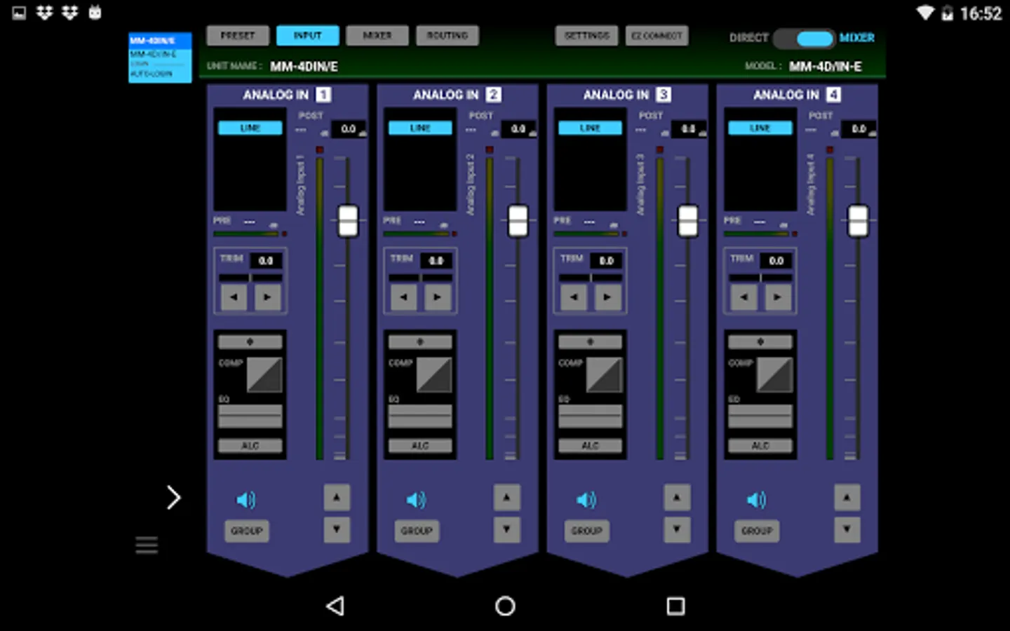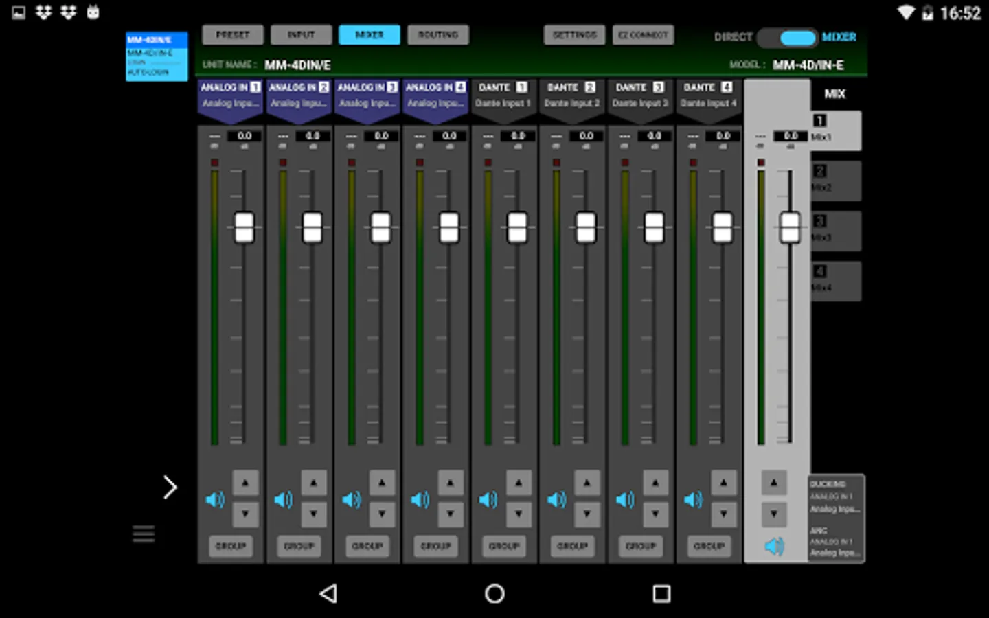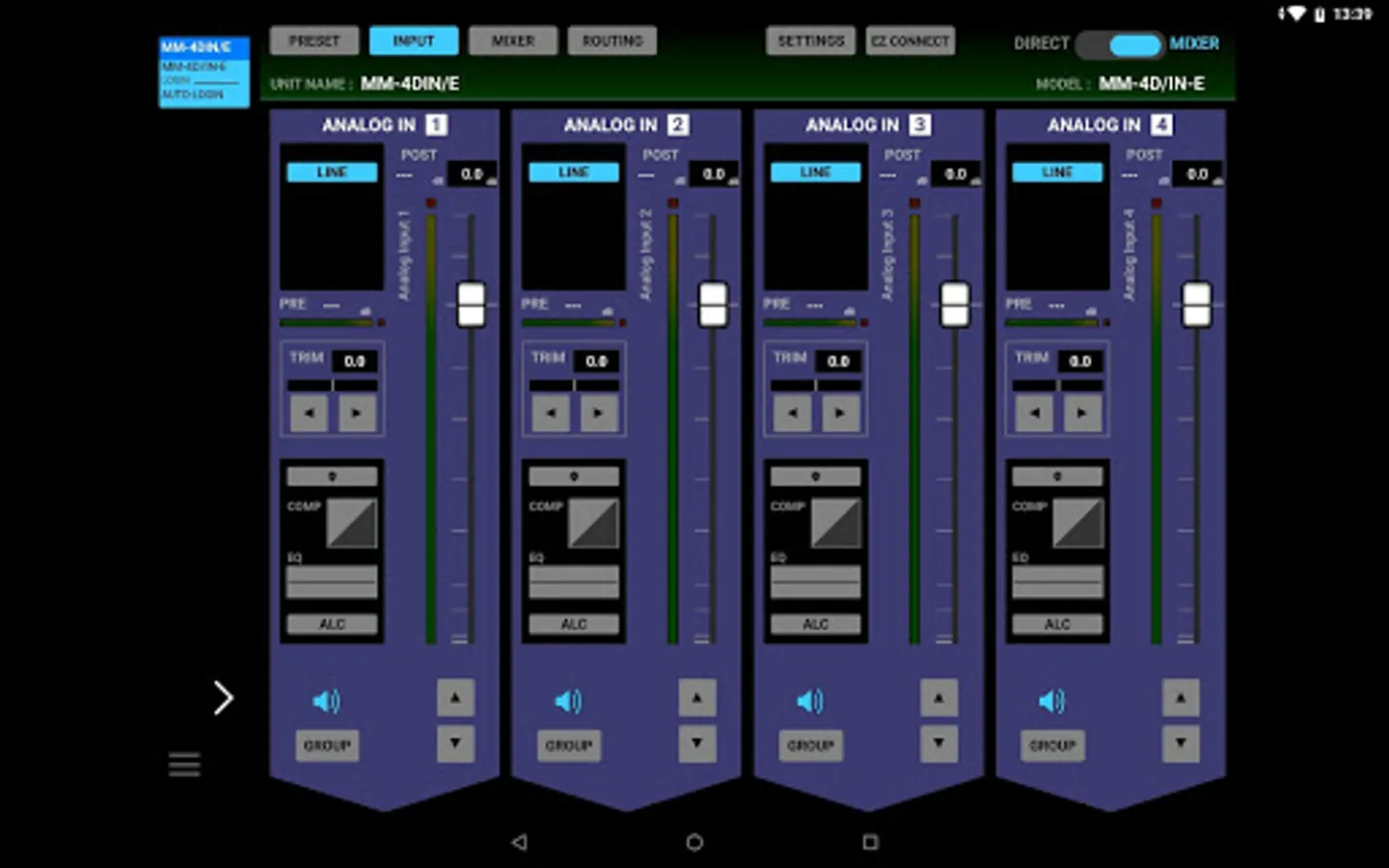 The TASCAM DCP CONNECT is a useful remote control software designed for system integrators/managers to fully configure and control the TASCAM Dante Compact Processor Series. This software allows controlling and managing multiple units of the series all at once. Available free for android devices.