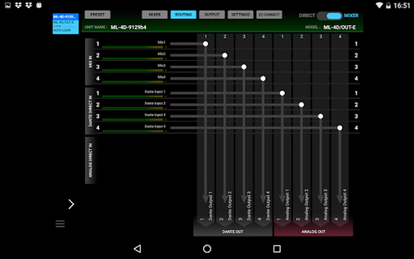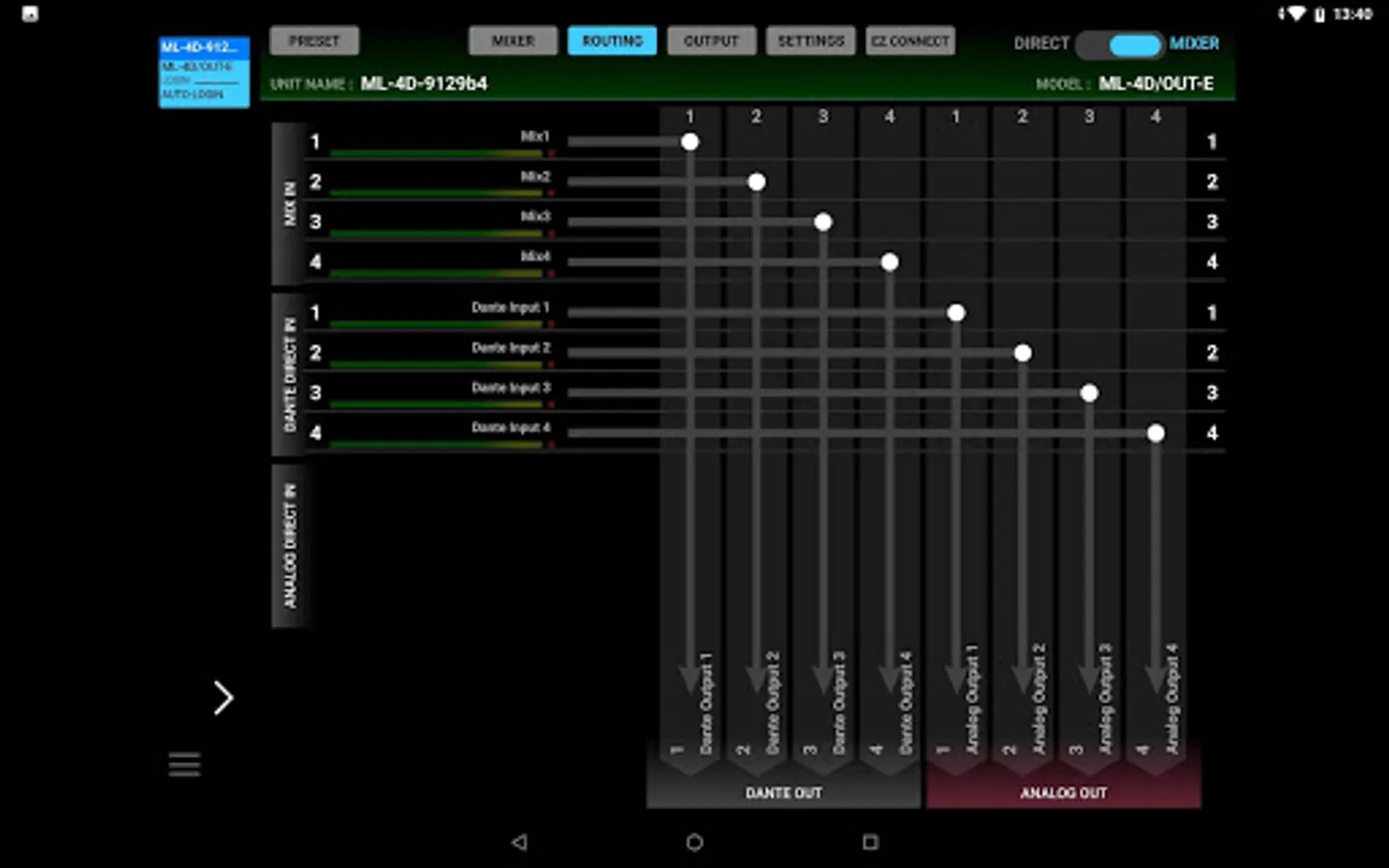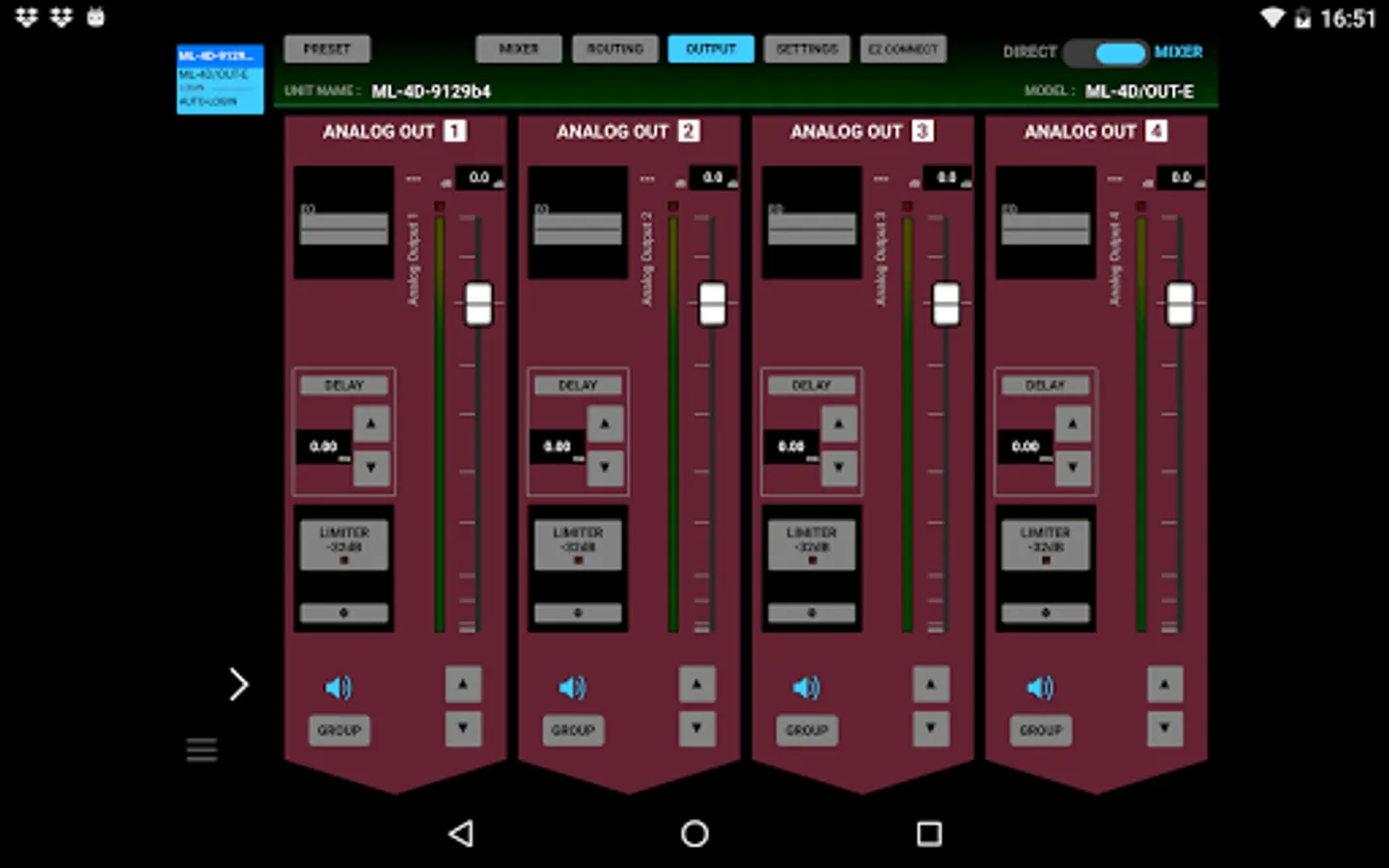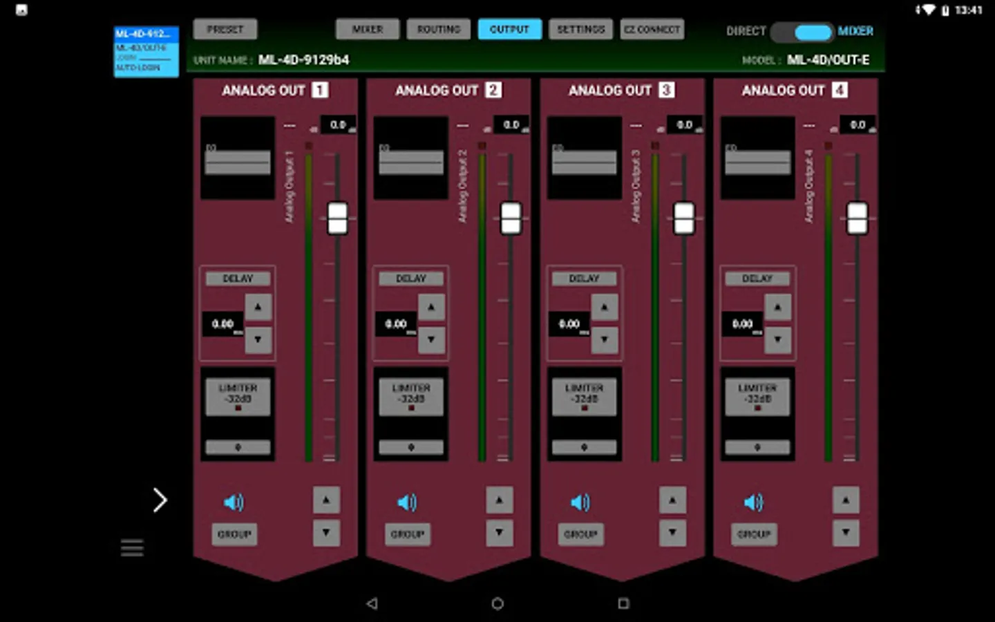 Users can access to multiple units by using only one control device, and build-up a small scale system using the Dante Compact Processor Series models only. Just by clicking or tapping the unit name displayed at the top of the screen will allow users to choose which unit to control.