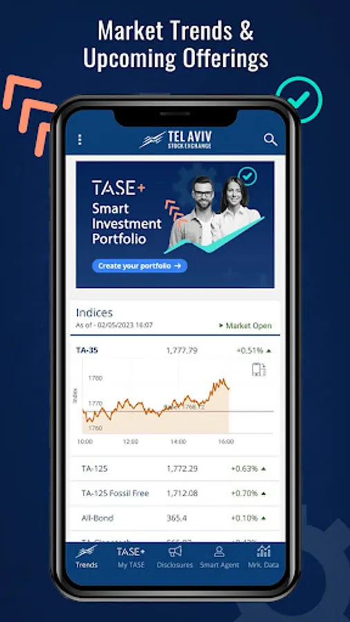 The latest version of Tel Aviv Stock Exchange official app, will keep you up to date with everything that is happening in the capital market. This version also includes a Smart Investment Portfolio: TASE + a feature that offers advanced tools for your investment portfolio.