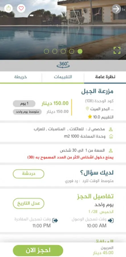 - Providing the possibility of viewing the farm with the 360-degree feature to allow for a realistic picture of the farm before booking it.