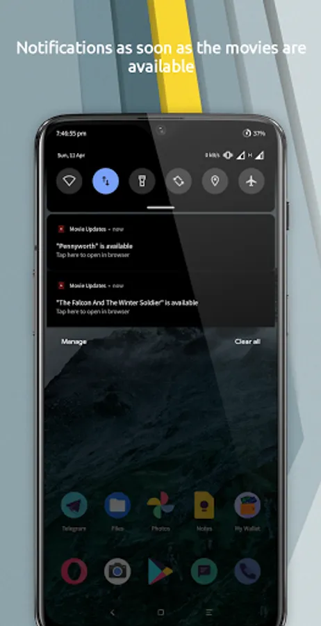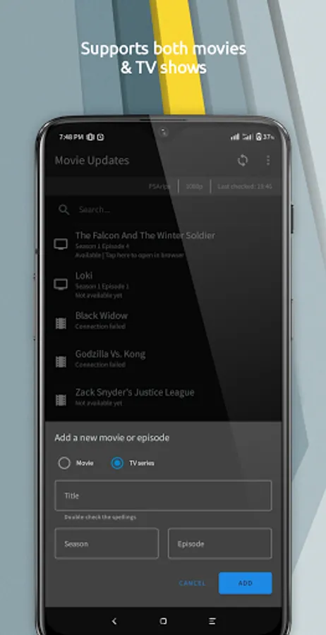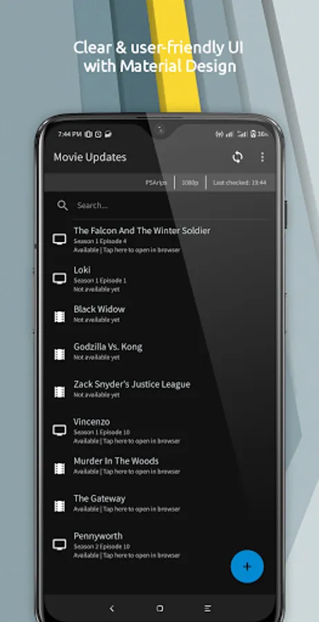 'Movie Updates' checks if the movies on your watchlist are uploaded online and sends you a notification as soon as they're available.
