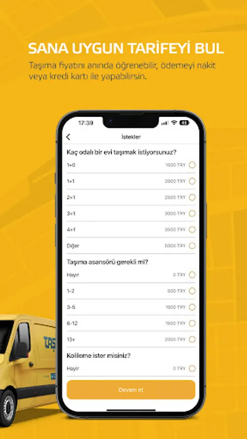 TAŞI offers you the opportunity to provide the appropriate options and controls for the commercial cargo, goods and home you want to transport, and to instantly select different vehicle models and sizes.