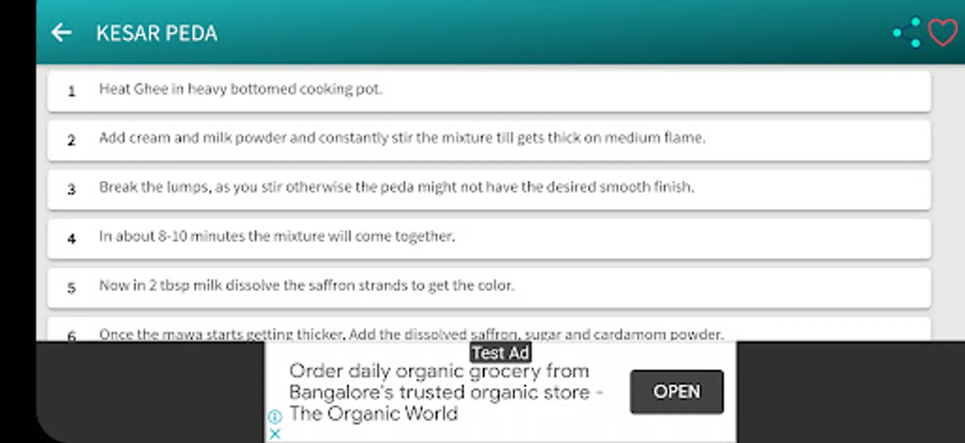 - Save recipes or bookmark in favorite which you love the most by pressing heart button.