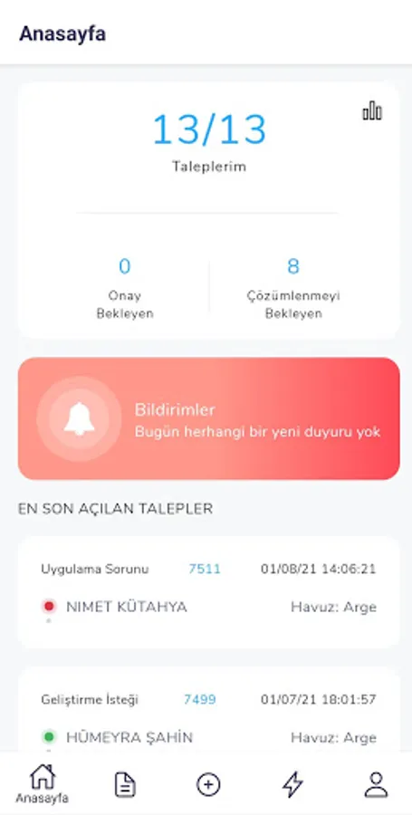 The life cycle of the Demand Management System starts with the safe, correct and fast receipt of the demands of employees or customers on the internet. Requests received are forwarded directly to the relevant company support employees. After this stage, the stage of evaluation and finalization of the requested request begins.