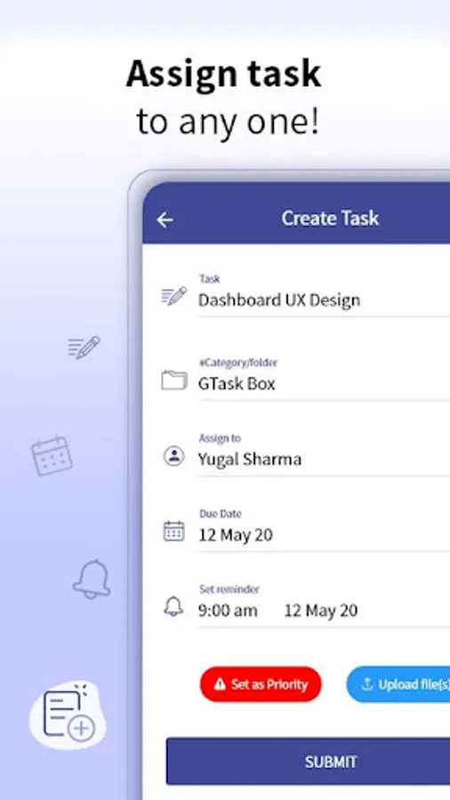 Team Collaboration: Connect with hundreds of your team members and assign them tasks from the contact lists. You only need to know the person number and then assign the task from the GTaskbox ,task manager tracker