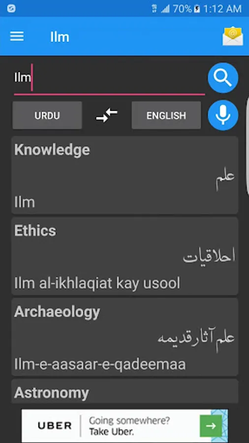 A simple dictionary with both support for English and Roman Urdu. Ilm in Urdu means Knowledge, hopefully this helps increase everyone's knowledge. Arabic, French and Spanish have been included as reference languages.