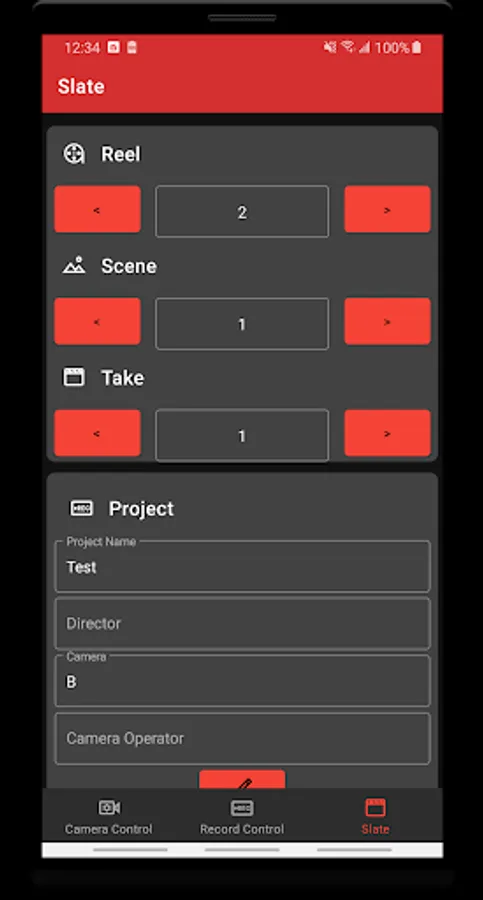 - Project Data (Name, Director, Camera Operator)