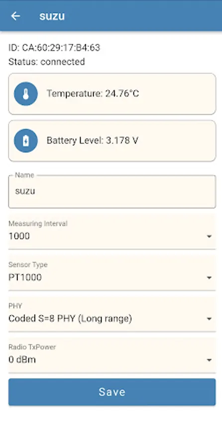 In the measure2go App, you can connect to Bluetooth devices. It is also possible to change the settings from certain devices, such as the name. The App can also fetch few data, for example it can show the current temperature with the help of a device which is compatible with the App. It also delivers the battery level of certain devices.