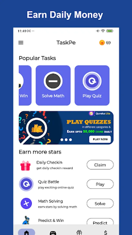 The best money-earning app that gives you daily rewards when you play games, Submit surveys, Refer the app to your friends and short tasks. Earning daily money has never been so easy and fun!