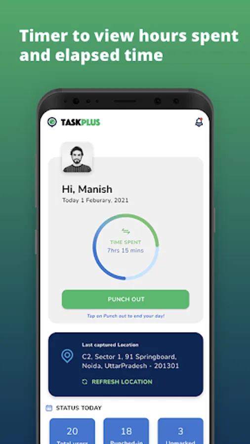 Track team’s daily working hours with Taskplus. Set start and end time of a working day. Your team can Punch-in/out in Taskplus to track daily working hours.