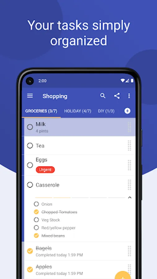 Get started in no time, quickly and easily add new tasks as you think of them using quick add, via a home screen shortcut, persistent notification or even create from another app by sharing with Tasks.