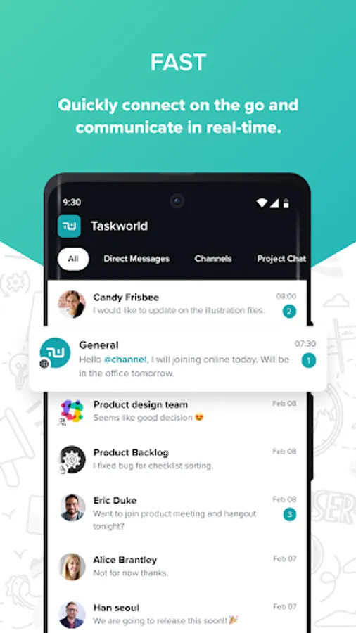 Introducing Taskworld Chat, a powerful new workplace communication tool that takes your productivity to the next level. A perfect complement to Taskworld’s Project Management platform, Taskworld Chat is a purpose-built, fast, and intuitive chat application designed to improve how your business communicates. Use Taskworld Chat to quickly connect on the go with your team members in real-time. Stay on top of essential communications in multiple workspaces and departments to effortlessly manage business messages & project update