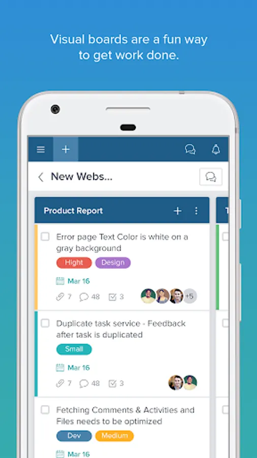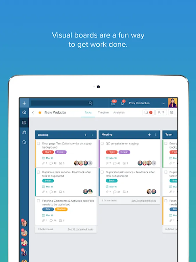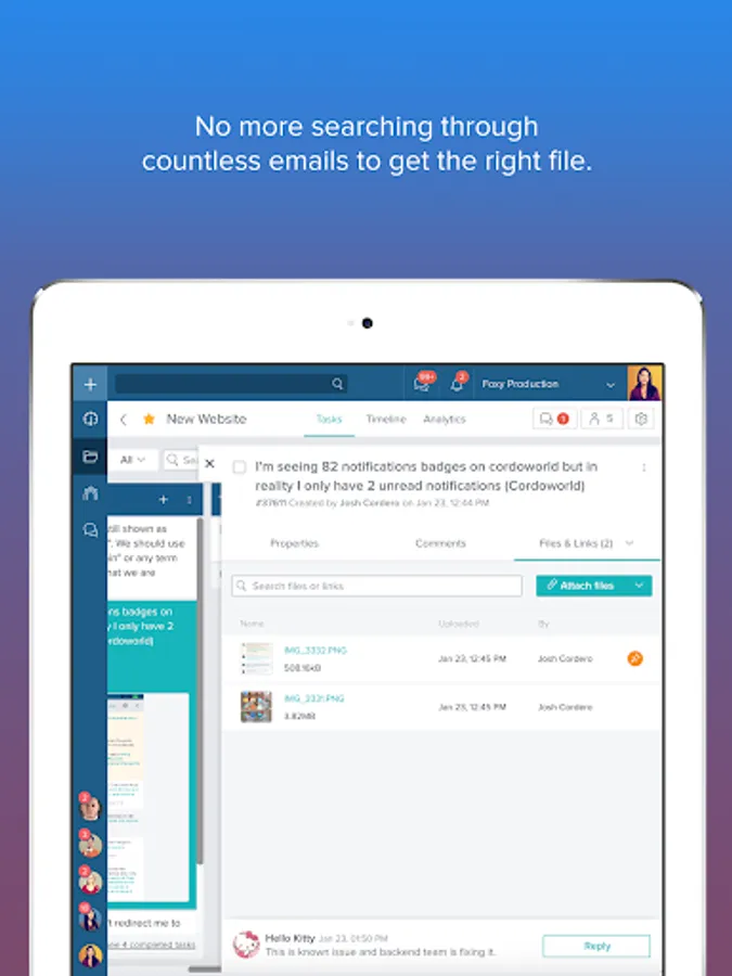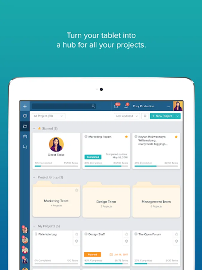 Turn your mobile into a hub for all your projects. Track work, chat with your team, organize files and analyze performance on the go.