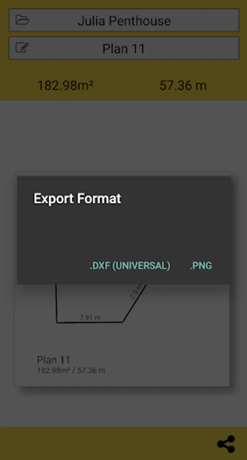 The tape measure can be used to make horizontal and vertical measurement as with a ruler. Trace a 2D plan and export it in 3D format (dxf).