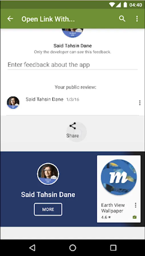 Scroll until you find the "Share" button. It is below ratings and reviews.
