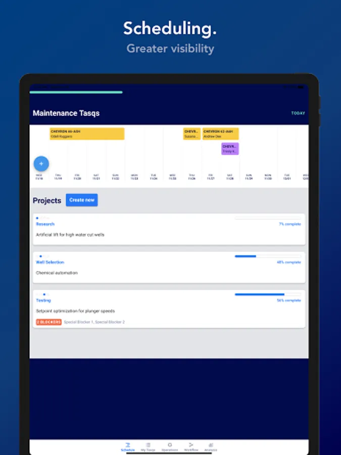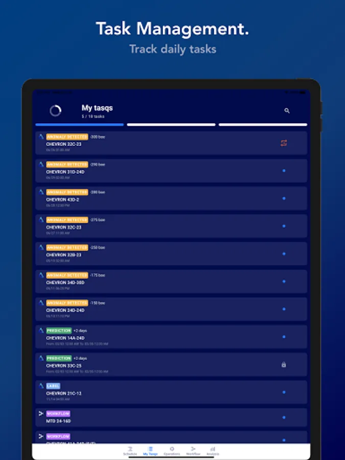Tasq simplifies operations by linking everyone within an organization. Our task management system connects all roles for better communication, collaboration, and transparency. Our machine learning-based platform answers the question “Why is production down, and what is being done about it?”