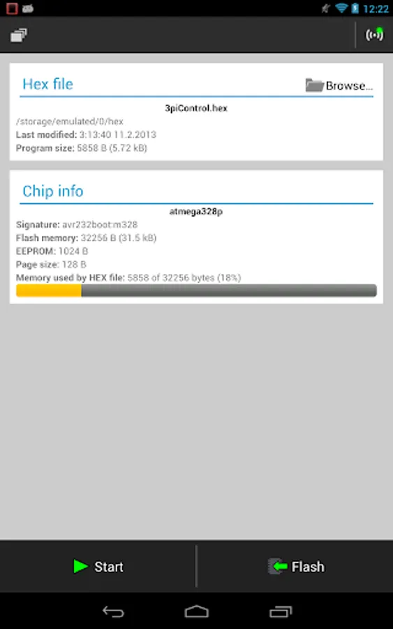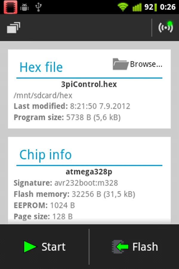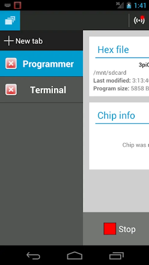 This is work in progress - as of now, the only module in this app is Terminal and Programmer. Both can connect to bluetooth serial port or TCP socket. Programmer now supports only avr232boot and avr109 bootloaders.