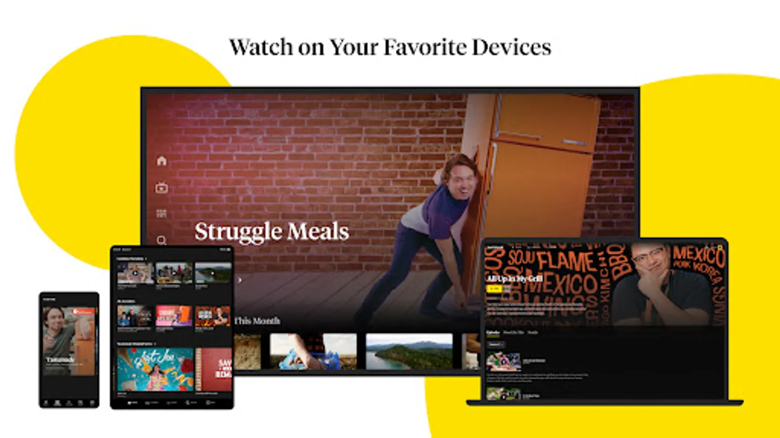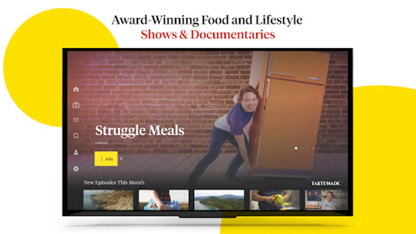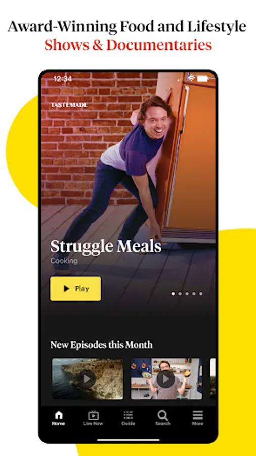 Tastemade with ads: Watch Tastemade original food and lifestyle series like Struggle Meals, Make this Tonight, and more for FREE.