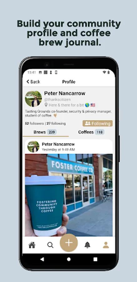Brew Coffee Together! Tasting Grounds is the specialty coffee app designed to connect the coffee community and help everyone brew better coffee together.