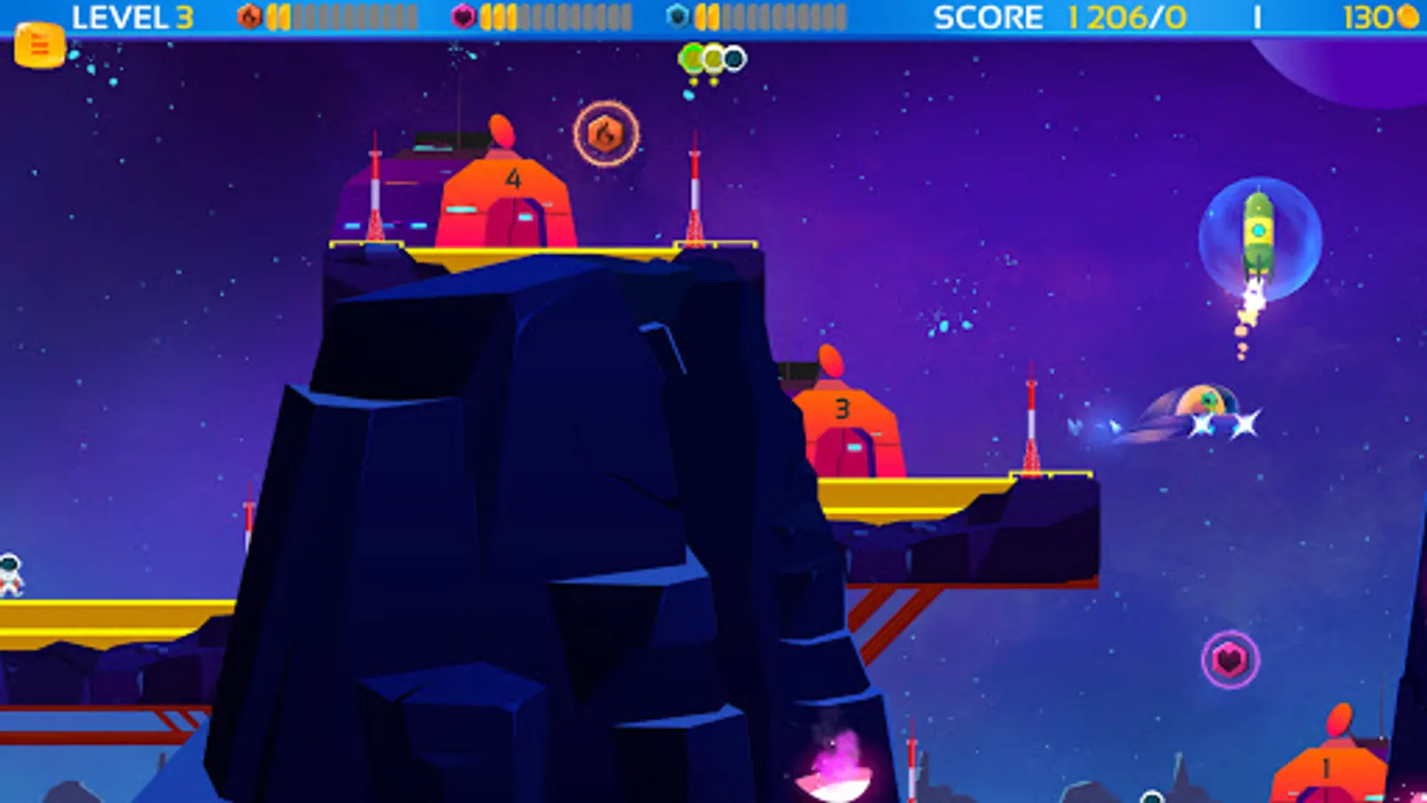 Keep an eye on his shield and fuel meters while he gets the astronauts to their destinations. He can earn cash to upgrade his ship and even buy new ones between levels. With you lending him a hand, this prehistoric pilot is sure to stay employed and avoid getting booted back to the Stone Age!