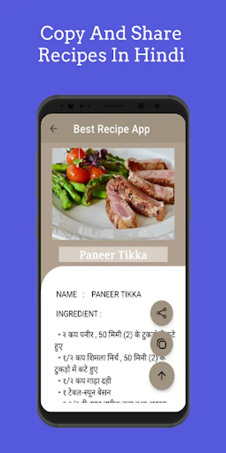All indian recipe book in hindi is a very usefull app. This App provide you various types of Indian recipes. In this App there are 12 Categories each category has lot's of recipes in hindi. This application is for foodie lovers. In this application every recipes are detailed and step by step. This app gives each recipe only in hindi.