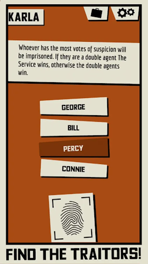Triple Agent! is a mobile party game about deception and espionage for 5 or more players. All you need to play is a single Android device and a few friends. Each game is an intense 10 minutes of deception, cunning, and deduction.