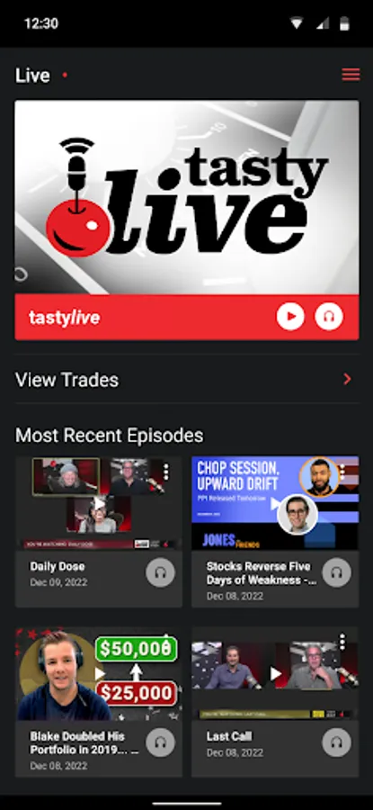 Learning new options and futures trading strategies and staying connected and engaged in the markets has never been easier with the tastylive app. With the tastylive app, you can catch the live show every day, as well as watch ALL of our available videos on demand 24/7. Not only that, but you can access our trade feed; follow and watch real traders trade real products in real time! What's the catch? There isn't one. We're free to use, no subscription necessary.