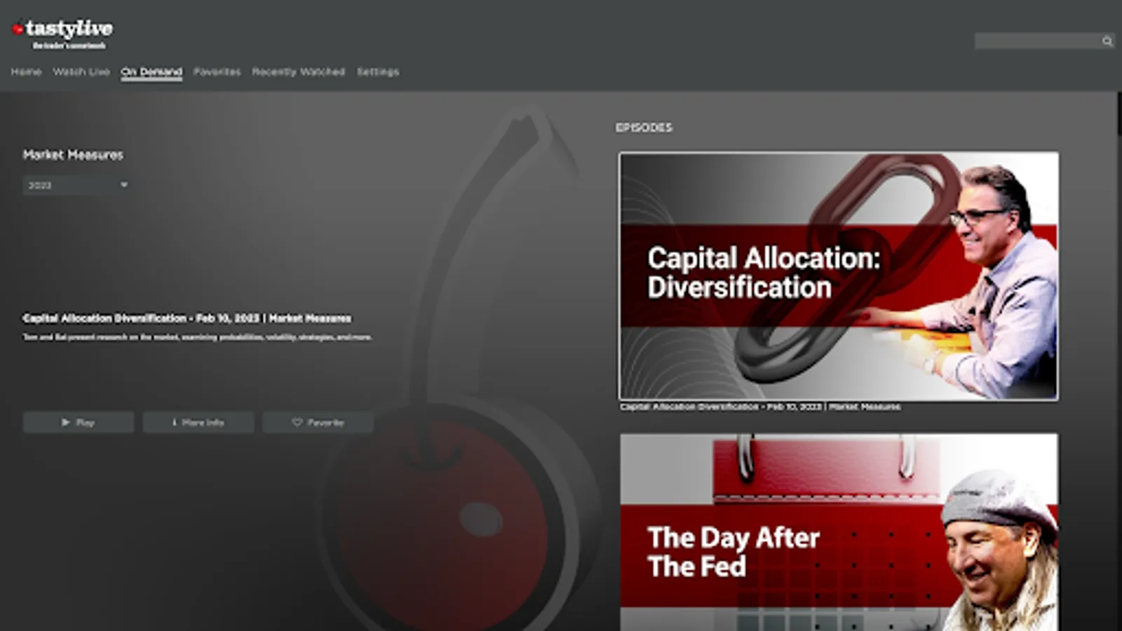 A real financial network. tastytrade produces hours of live programming every day, even weekends! With over 100 original segments and over 20 on-air traders from all walks of life, tastylive will help you navigate the markets, find actionable trade ideas, and keep you chuckling all week long.