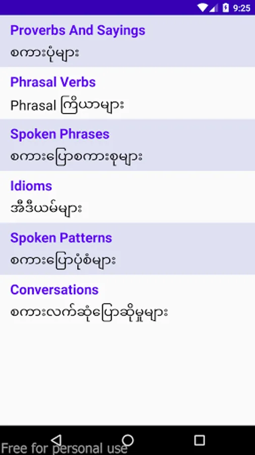 idioms,conversations,common words,common phrases,spoken patterns all contain in app